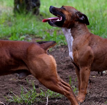 De plus une mauvaise angulation arrière fait perdre beaucoup de rapidité de réaction à l’arrière train ainsi que de l’élasticité, qualités nécessaires .à un chien de combat, lui permettant de bondir et d’esquiver.