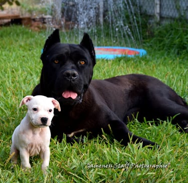 La devise Nemo Me Impune Lacessit illustre parfaitement l'esprit de notre élevage. Nous sélectionnons soigneusement des chiens qui, au-delà de leur caractère attachant, conservent un héritage ancestral propre à leur race. Nos chiens sont équilibrés et confiants, ce qui leur permet d'interagir calmement avec leurs congénères sans provoquer d'agressivité inutile. Ils possèdent également une dose suffisante de tempérament pour faire face aux provocations. En mettant l'accent sur ces traits, nous visons à créer des compagnons fidèles, confiants et courageux, incarnant le véritable esprit du Stafford que nous chérissons.