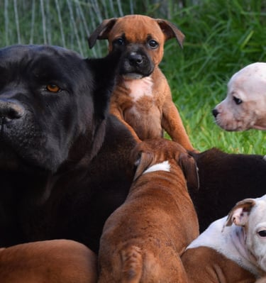 Depuis 2013, nous nous consacrons à l'élevage de Staffordshire Bull Terriers en mettant un point d'honneur à sélectionner nos reproducteurs. Notre approche repose sur des critères stricts, notamment la santé, le tempérament et la polyvalence des chiens.
