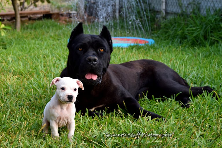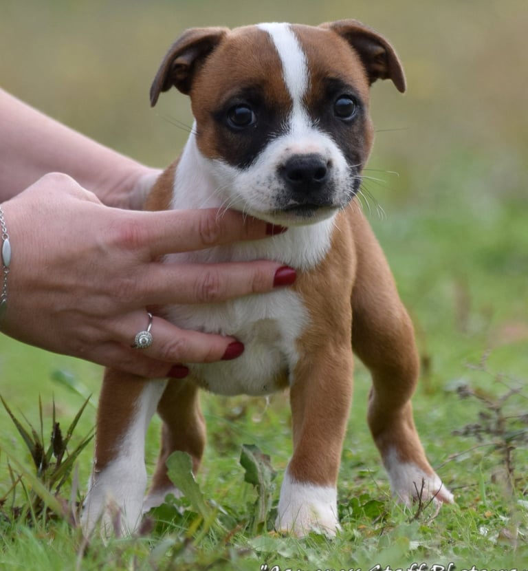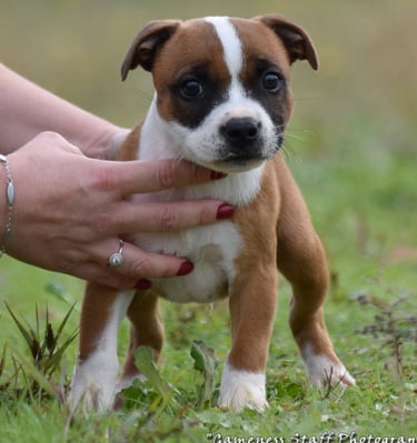 Un élevage parfait ! Avec un accueil super, et surtout des chiots adorable, la mienne que j’ai depuis 1 mois est une vrai star dehors, et c’est un amour à la maison elle apporte que du bonheur, en 1 semaine elle connaissait assis 💪 elle adore les autres animaux, apprendre, les humains, jouer, et manger !😅 merci beaucoup pour cette joie au quotidien j’en serais reconnaissante à vie ! Si vous voulez un Staffie en or c’est ici qu’il faut venir